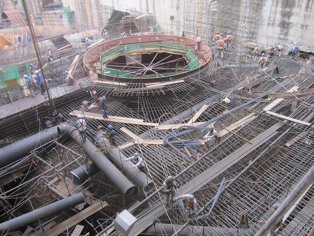 Um grupo de operárias parecia formigas pelo tamanho do local, em 2015, durante a construção da principal usina da hidrelétrica de Belo Monte, quando foram instaladas máquinas e turbinas para gerar 11 mil megawatts de energia elétrica. A usina produz apenas 40% de sua capacidade instalada e pode limitar ainda mais sua produtividade diante do desmatamento da bacia do rio Xingu, que cobre cerca de 531 mil quilômetros quadrados. CRÉDITO: Mario Osava / IPS
