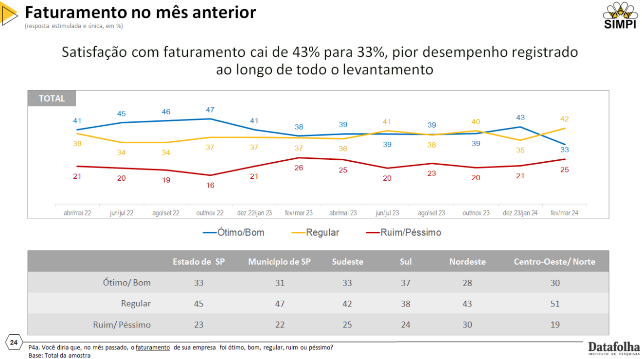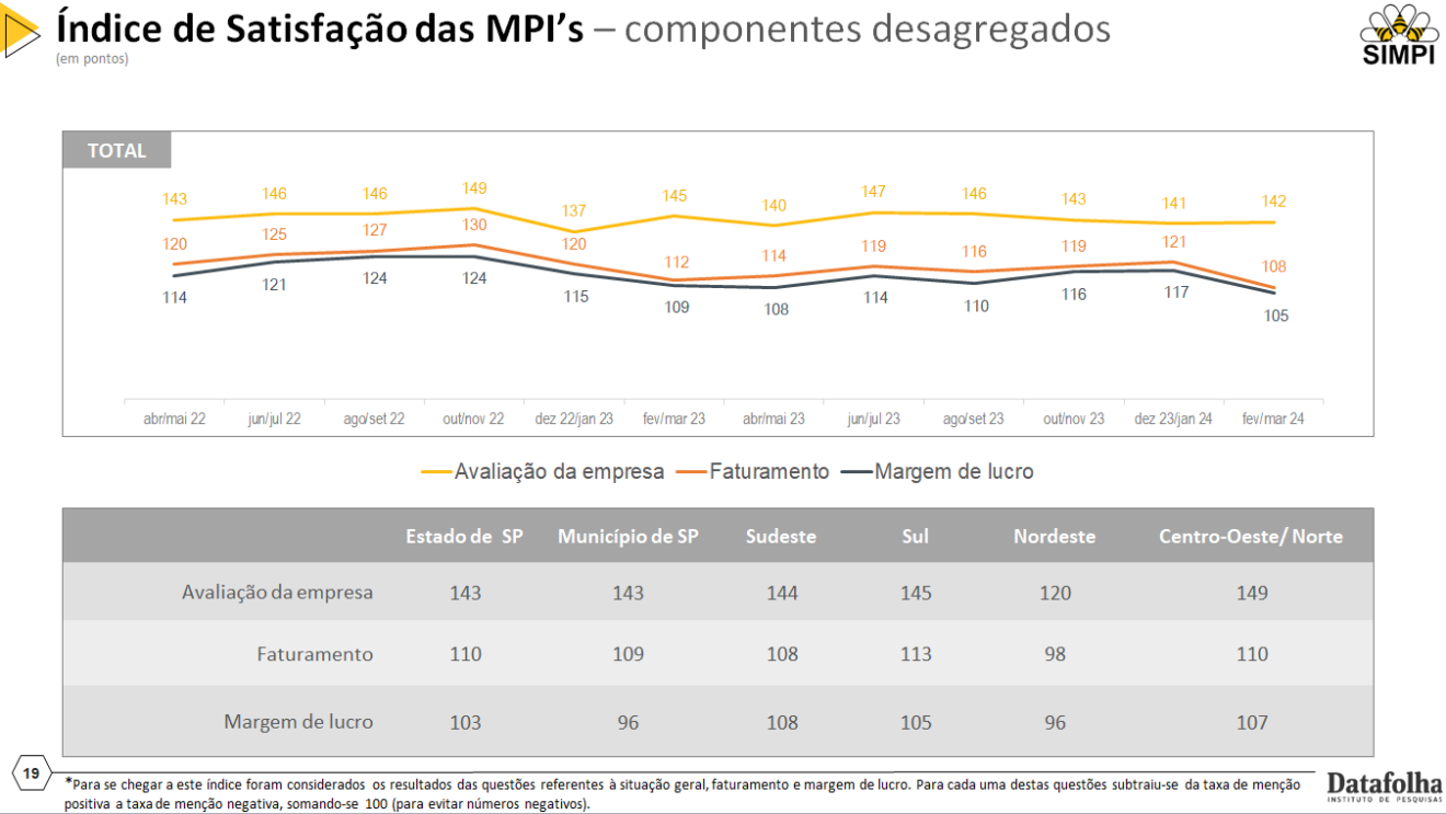 Pesquisa encomendada pelo SIMPI e realizada pela Datafolha, o Indicador Nacional de Atividade da Micro e Pequena Indústria, mostra a situação real da categoria. A coleta de dados ocorreu entre os dias 12 e 28 de março de 2023, foram realizadas 715 entrevistas.